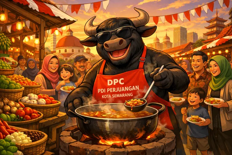 DPC PDI Perjuangan Kota Semarang Gelar Program Dapur Marhaen, Sediakan Makan Siang Gratis untuk Warga
