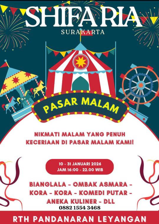 Warta1.id – Sifa Ria dijadwalkan menggelar kegiatan pasar malam di Jl. Padang Leyangan, Jetis Tiga, Desa Leyangan, Kecamatan Ungaran Timur, Kabupaten Semarang, Jawa Tengah. Kegiatan hiburan rakyat tersebut akan berlangsung selama 22 hari, mulai 10 hingga 31 Januari 2026.