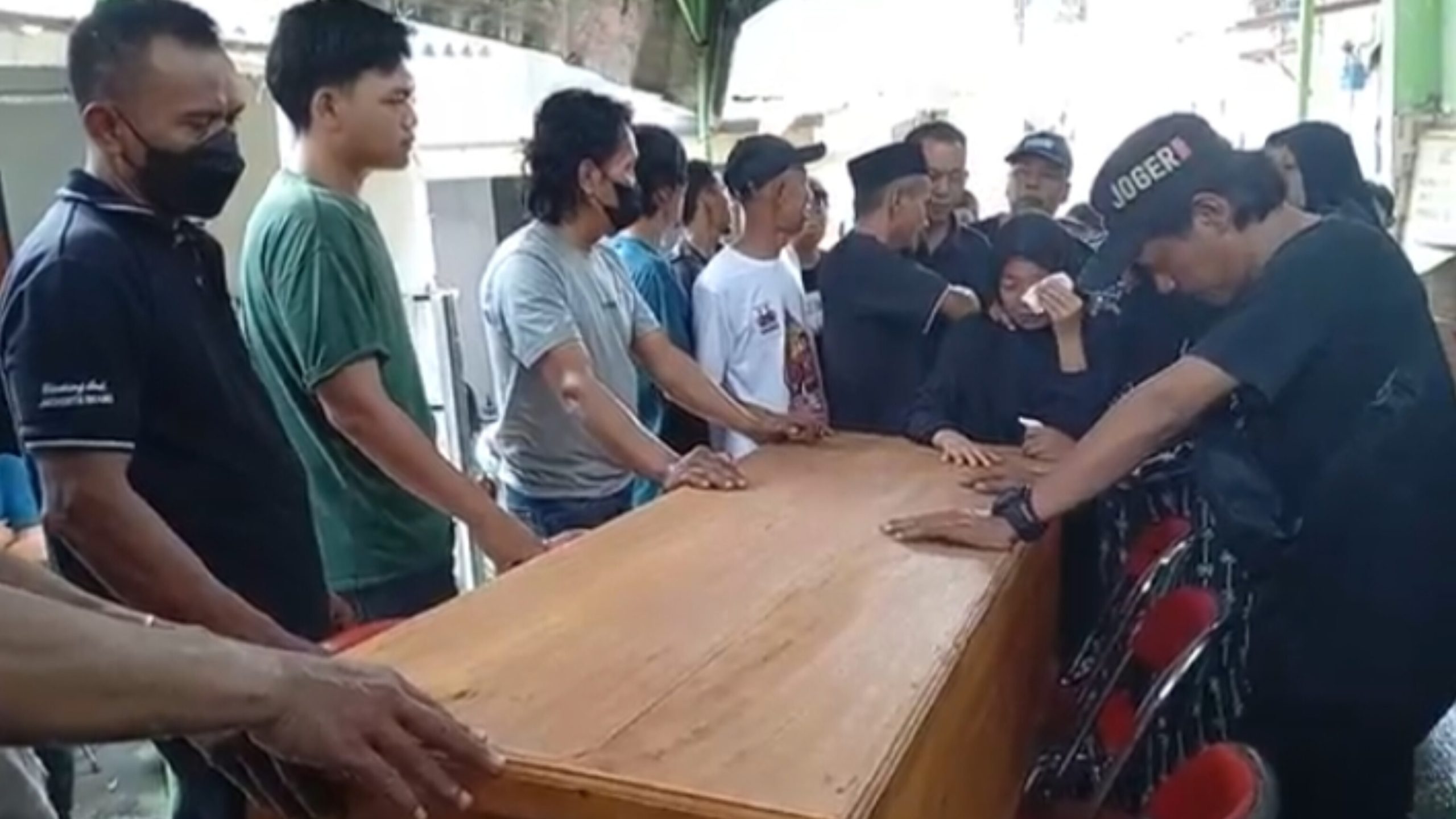 Suasana duka menyelimuti rumah keluarga korban di Jl. Jatisari, Gisikdrono, Semarang Barat, pada Sabtu (9/8/2025). Isak tangis pecah saat jenazah tiba di rumah duka.